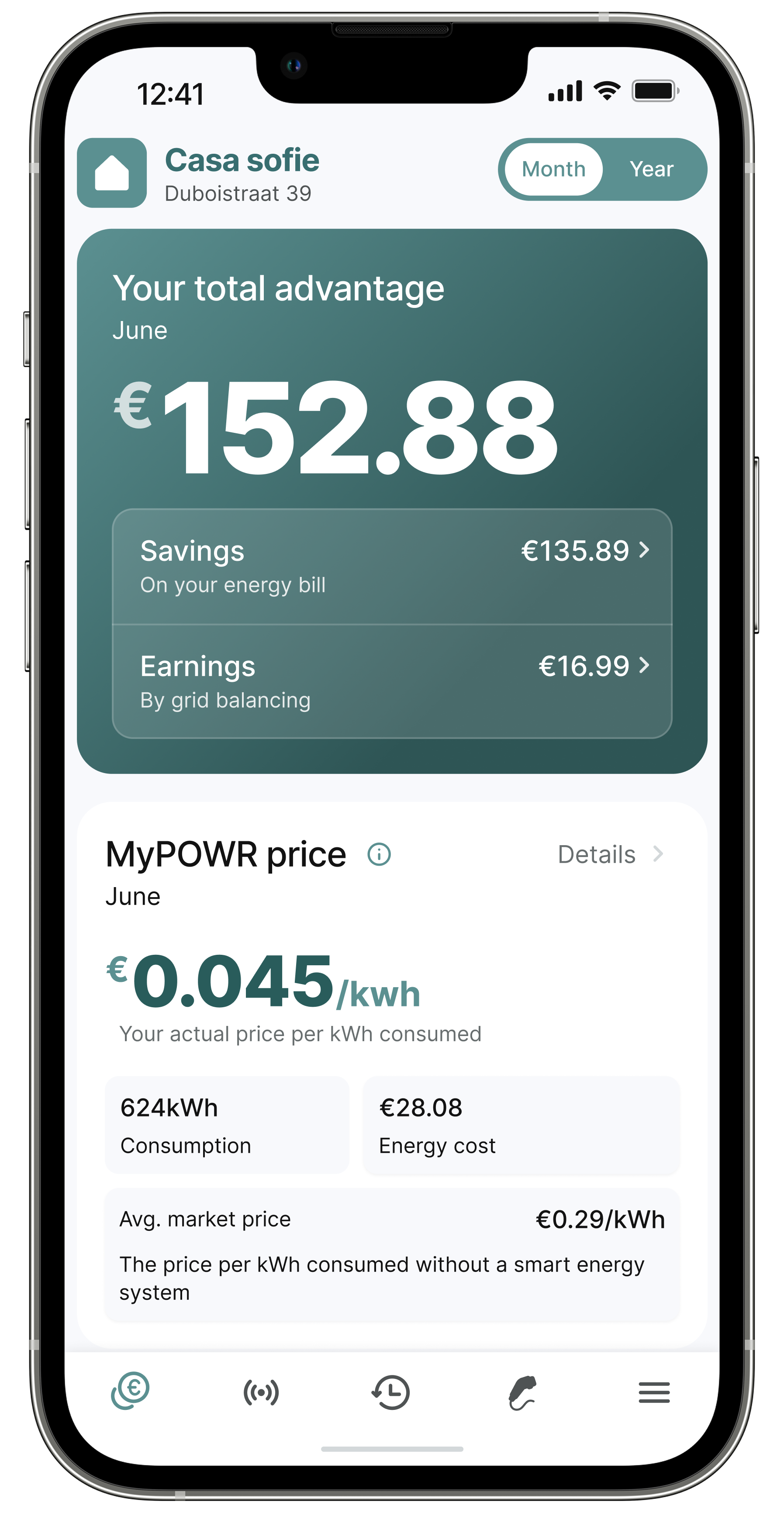 - Track your progress: see how your energy cost evolves over time